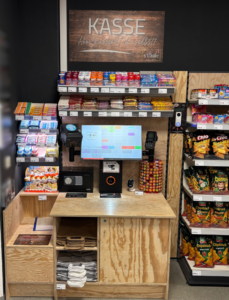 Deine ausgewählten Produkte an der Kasse selbst erfassen/scannen.